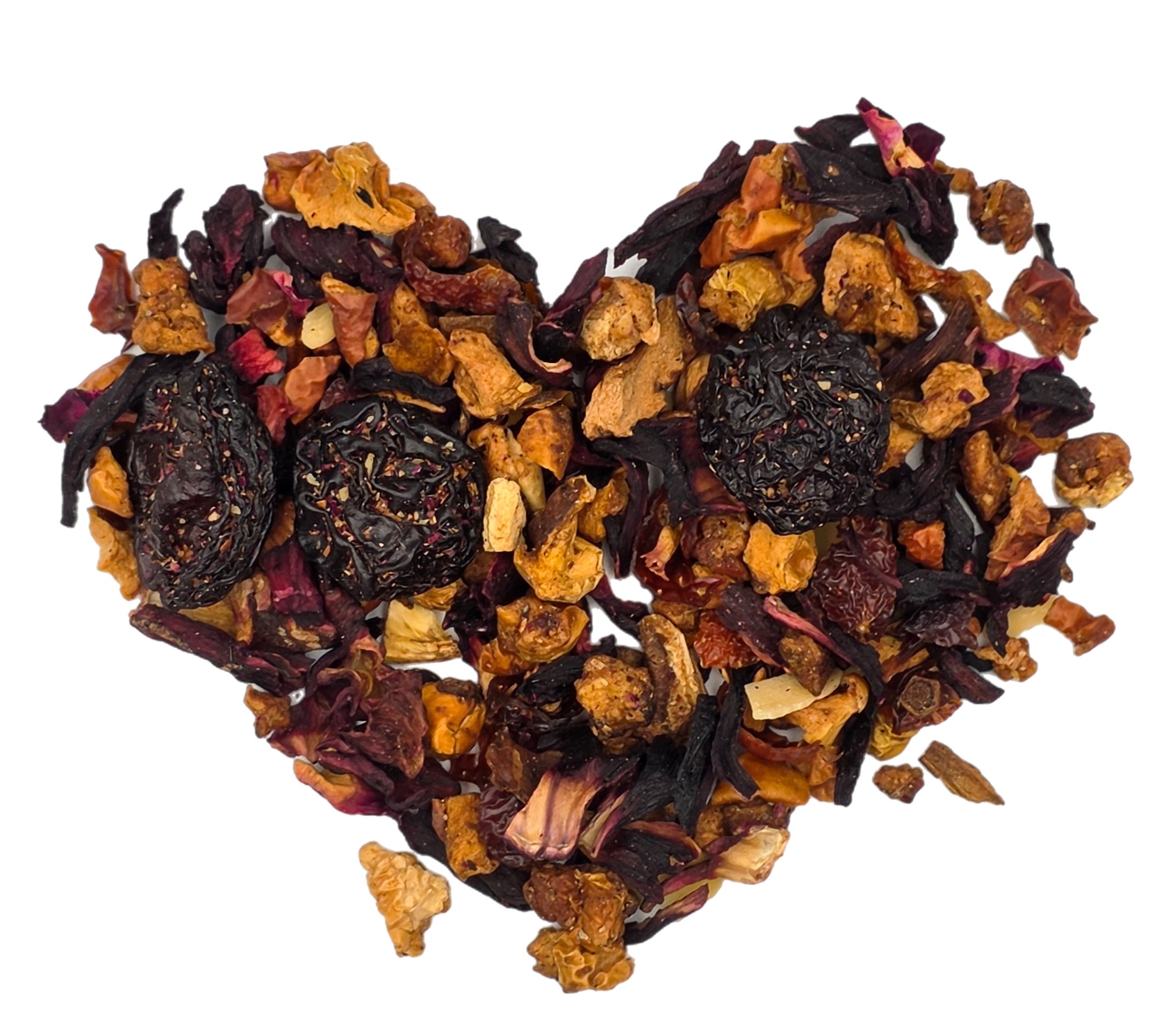 Ingrediënten: Appel (44%), hibiscus, rozenbottel, druif (plantaardige olie), amandel, kaneelstukjes, smaakstof, rozenblaadjes.