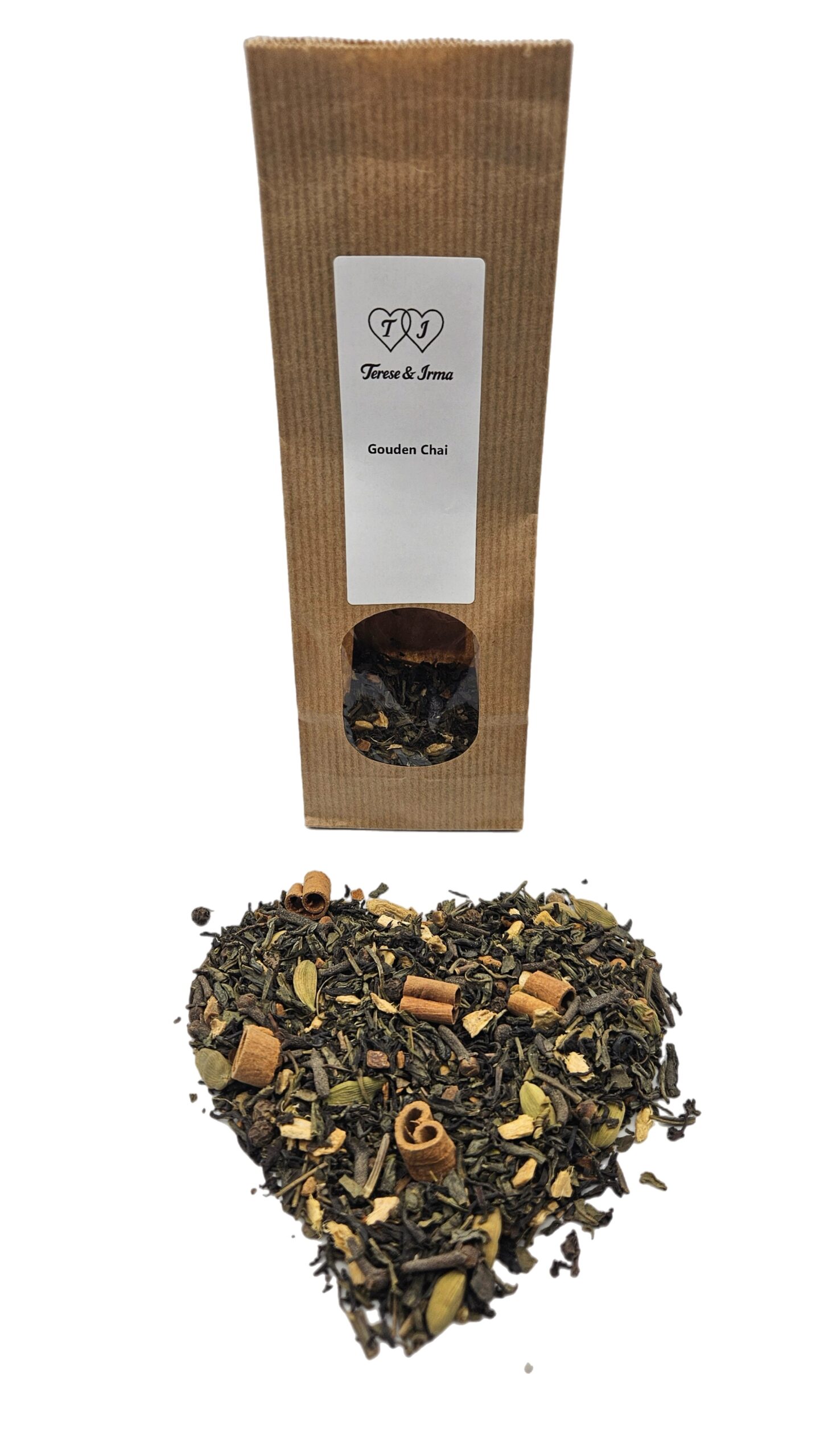 Gouden Chai is een verwarmende melange waarin groene en zwarte thee samen een volle, levendige basis vormen. De klassieke chai-kruiden van gember, kaneel, kardemom en kruidnagel geven de blend zijn rijke, kruidige karakter. Zwarte peper zorgt voor een subtiele, pittige diepte, terwijl de kaneelrolletjes een zachte, zoete warmte toevoegen. Extra kaneel rondt het geheel af en maakt deze chai heerlijk rond en aromatisch. Het resultaat is een chai die zowel hartverwarmend als energiek is. Perfect voor een moment van rust, gezelligheid en pure chai-beleving.