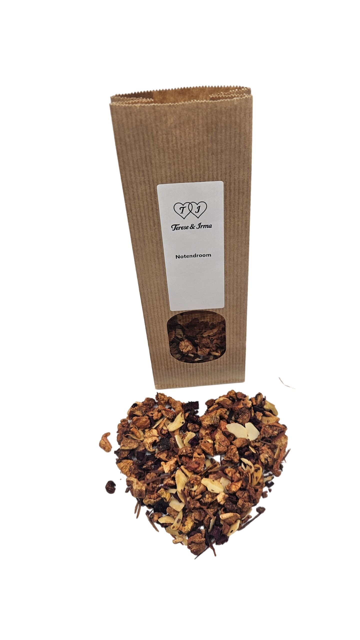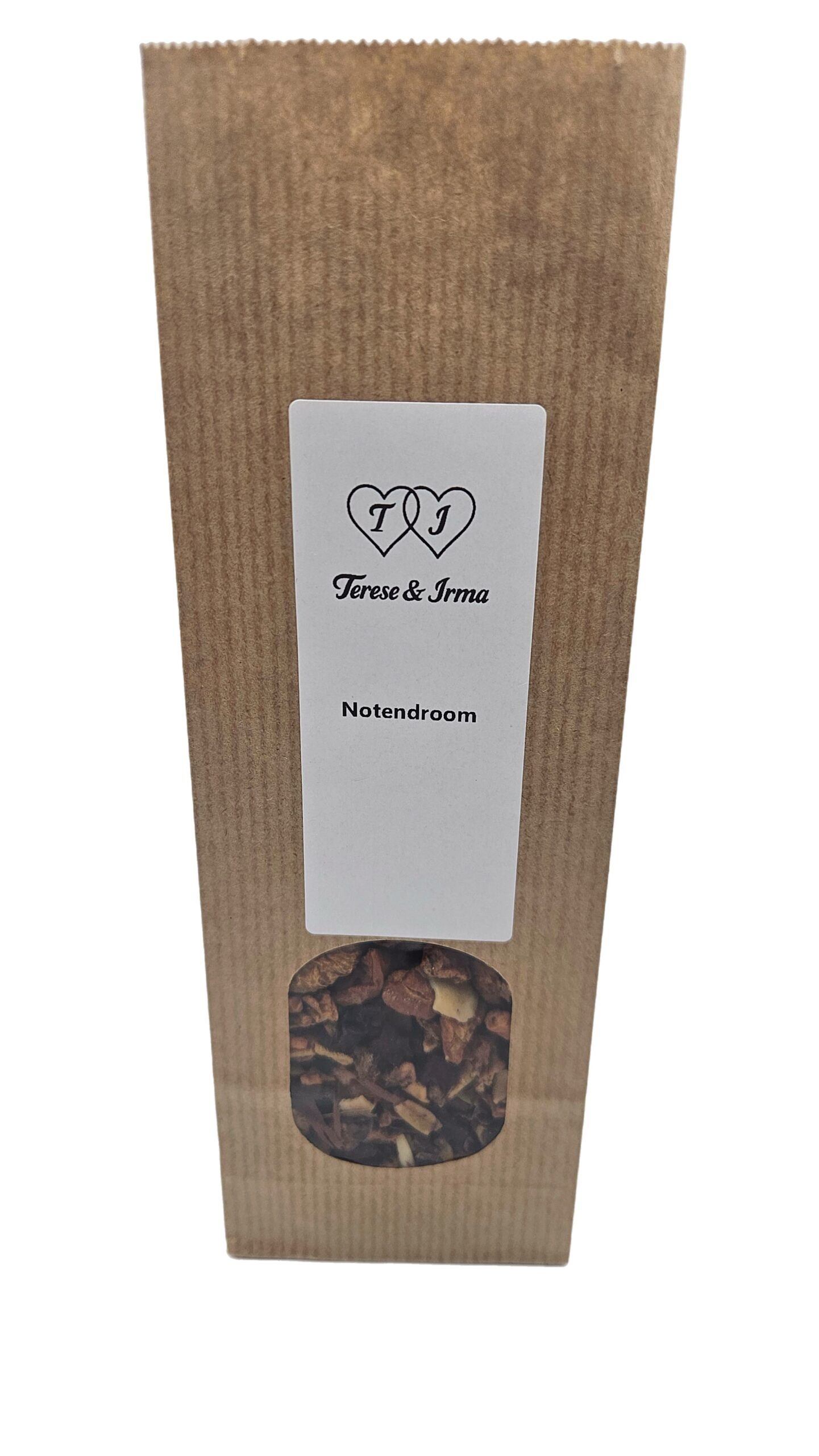 Laat je meevoeren door de zachte, zoete geur van Notendroom. Een fruitthee die voelt als een knusse omhelzing. Appelstukjes en bieten zorgen voor een natuurlijke, fruitige basis, terwijl gehakte amandelen en kaneel een warme, nootachtige diepte toevoegen. Het geheel wordt afgerond met een subtiel natuurlijk aroma dat deze blend zijn dromerige, bijna dessertachtige karakter geeft. Een thee die je uitnodigt om even te vertragen, te genieten en jezelf een klein moment van pure verwennerij te gunnen.