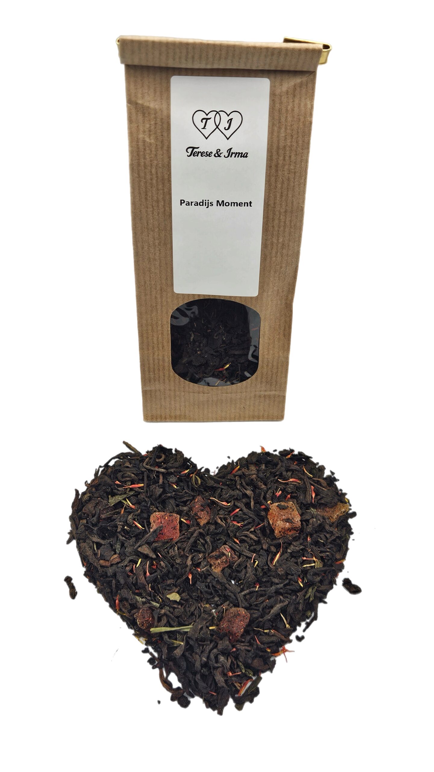 Paradijs Moment: een thee die tropische zoetheid, kruidige diepte en zonnige harmonie samenbrengt. Een paradijselijk geluk in elk kopje.