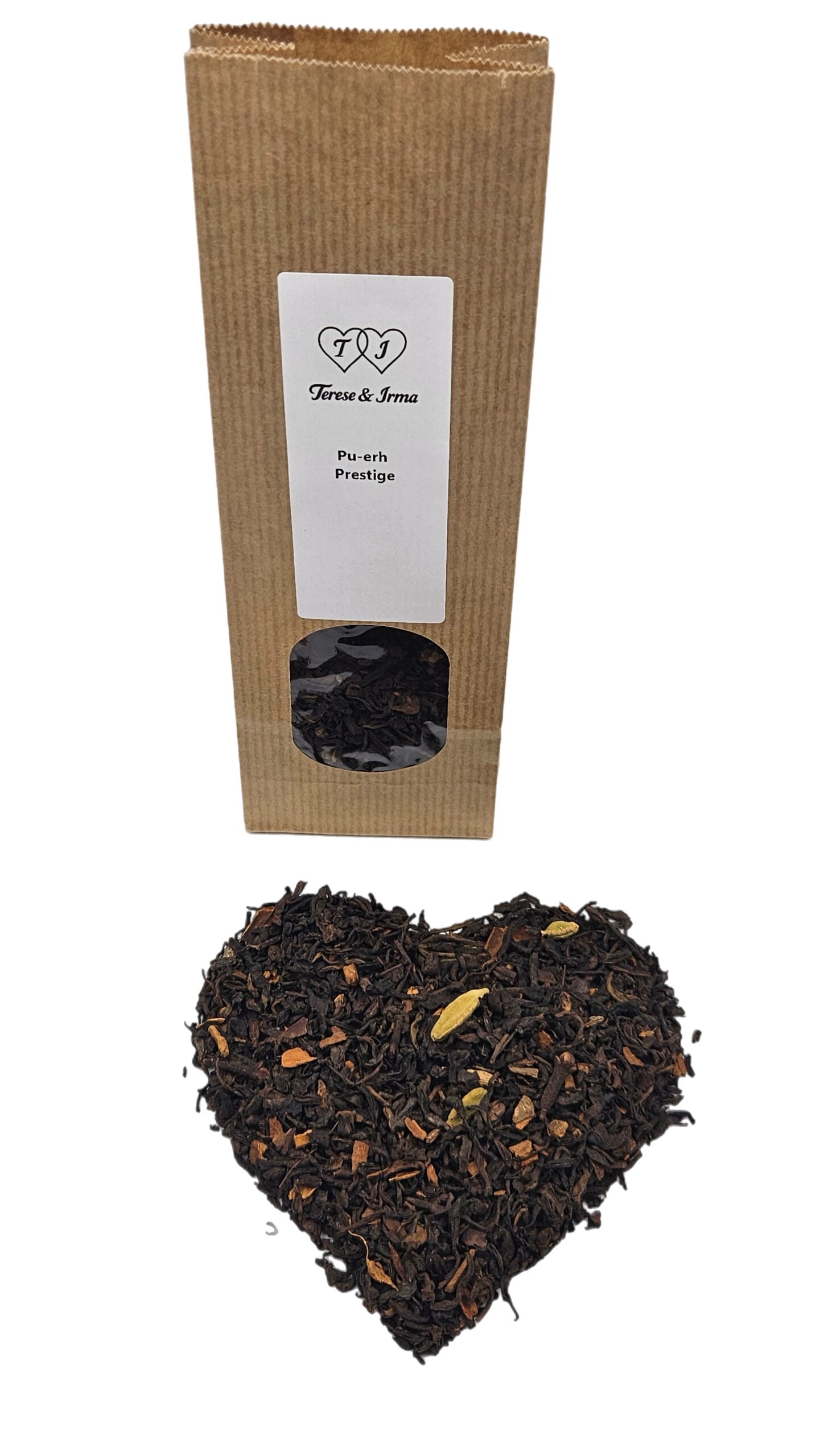 Pu Erh Prestige: een biologische thee die diepte, kruidige warmte en verfijnde luxe samenbrengt. Een prestigieus moment vol geluk.