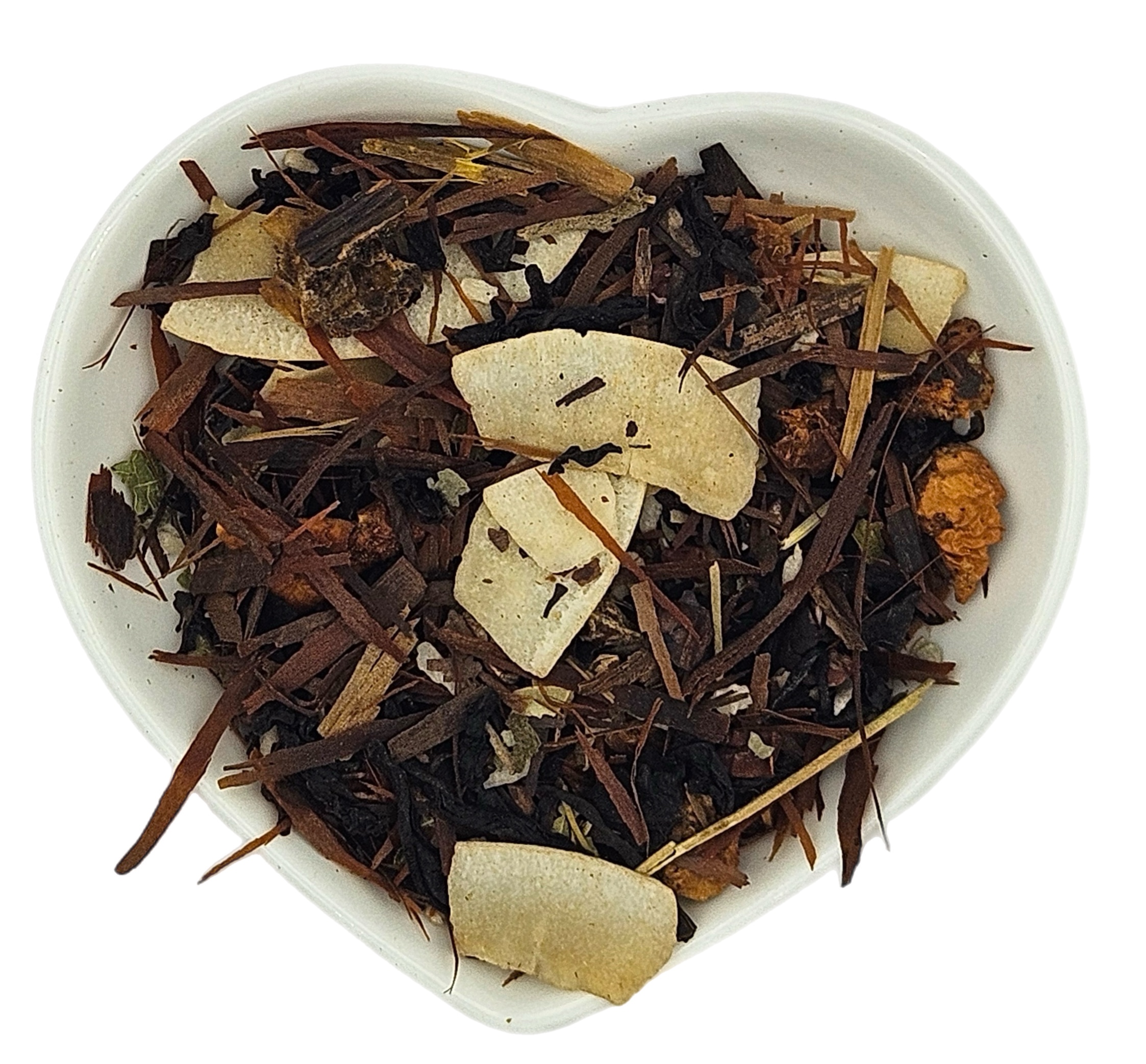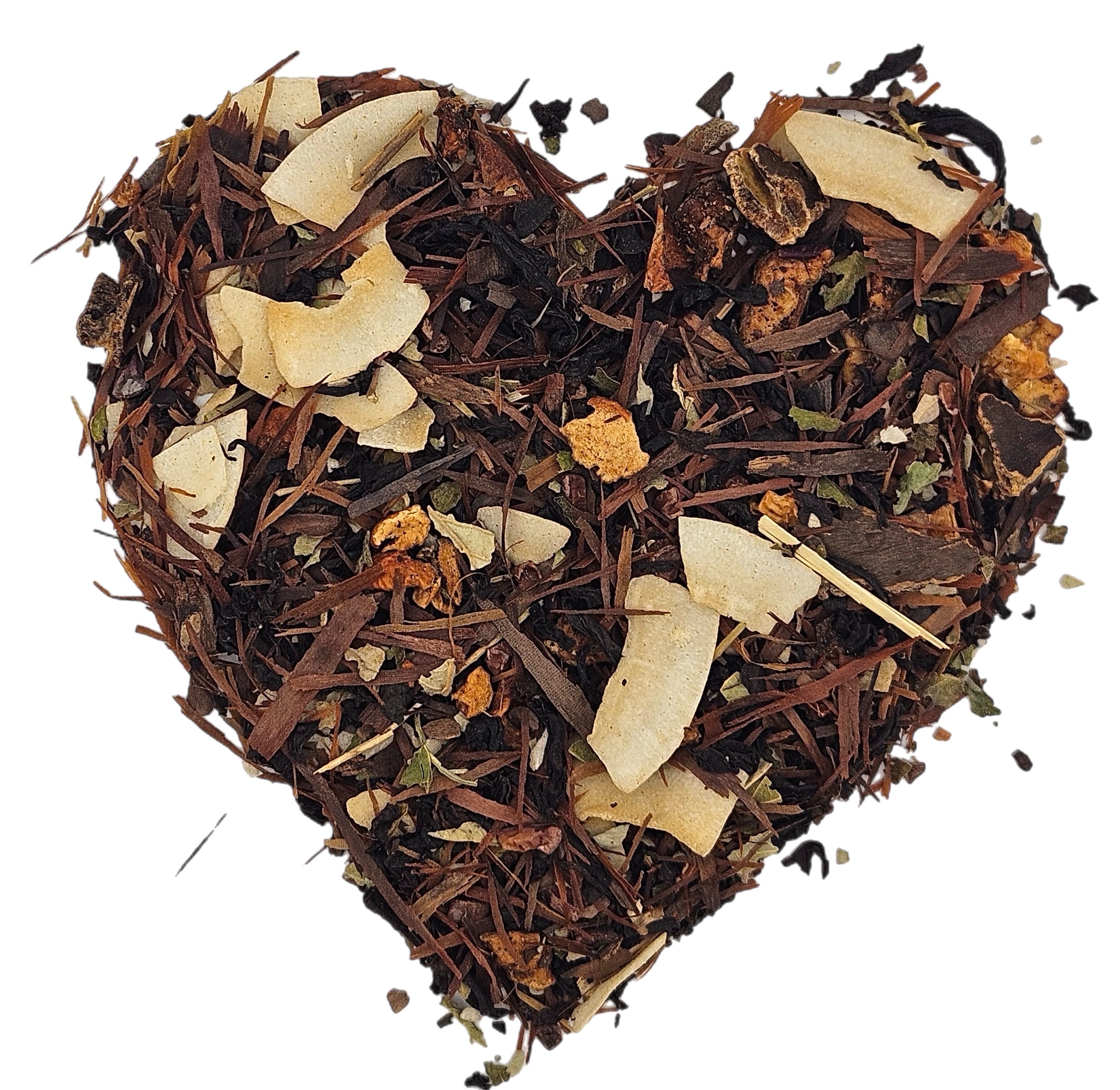 Ingrediënten: Zwarte thee, lapacho, cacaobonen, kokosvlokken (kokos, suiker), stukjes appel, johannesbrood, kokosrasp, bramenbladeren, natuurlijk aroma, aroma.