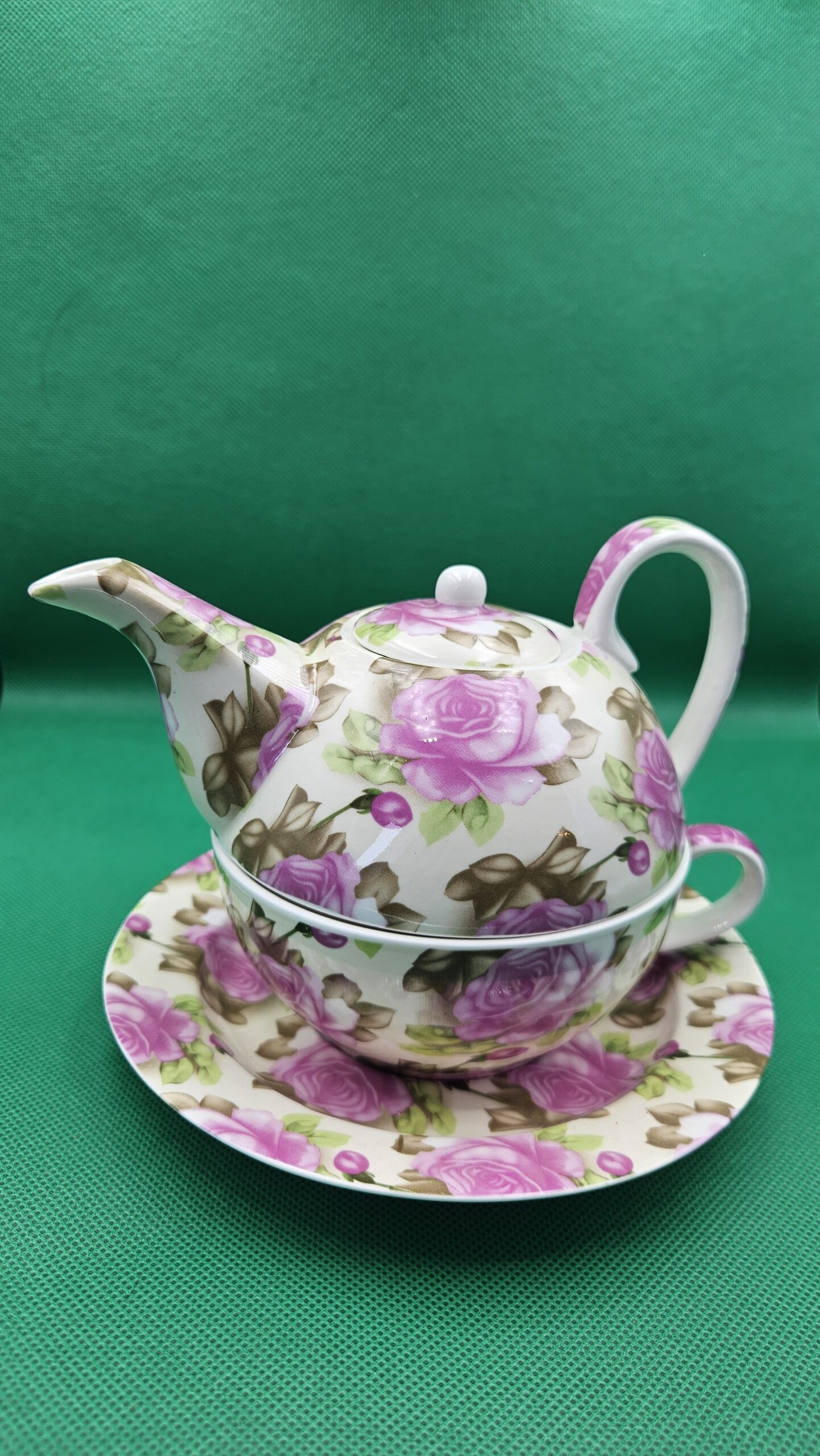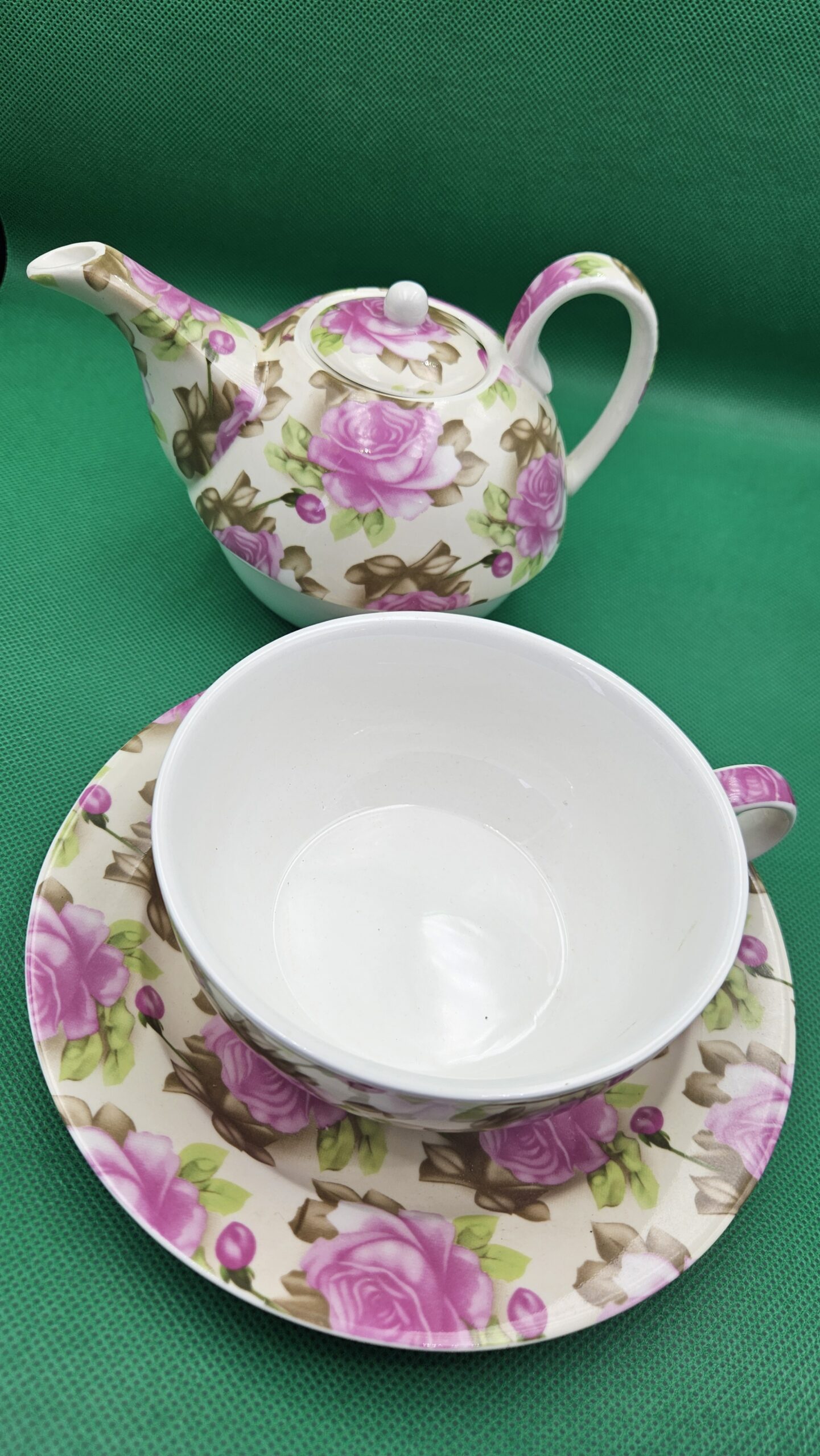 Tea for One Set met roze Rozenpracht – Tijdloos en romantisch