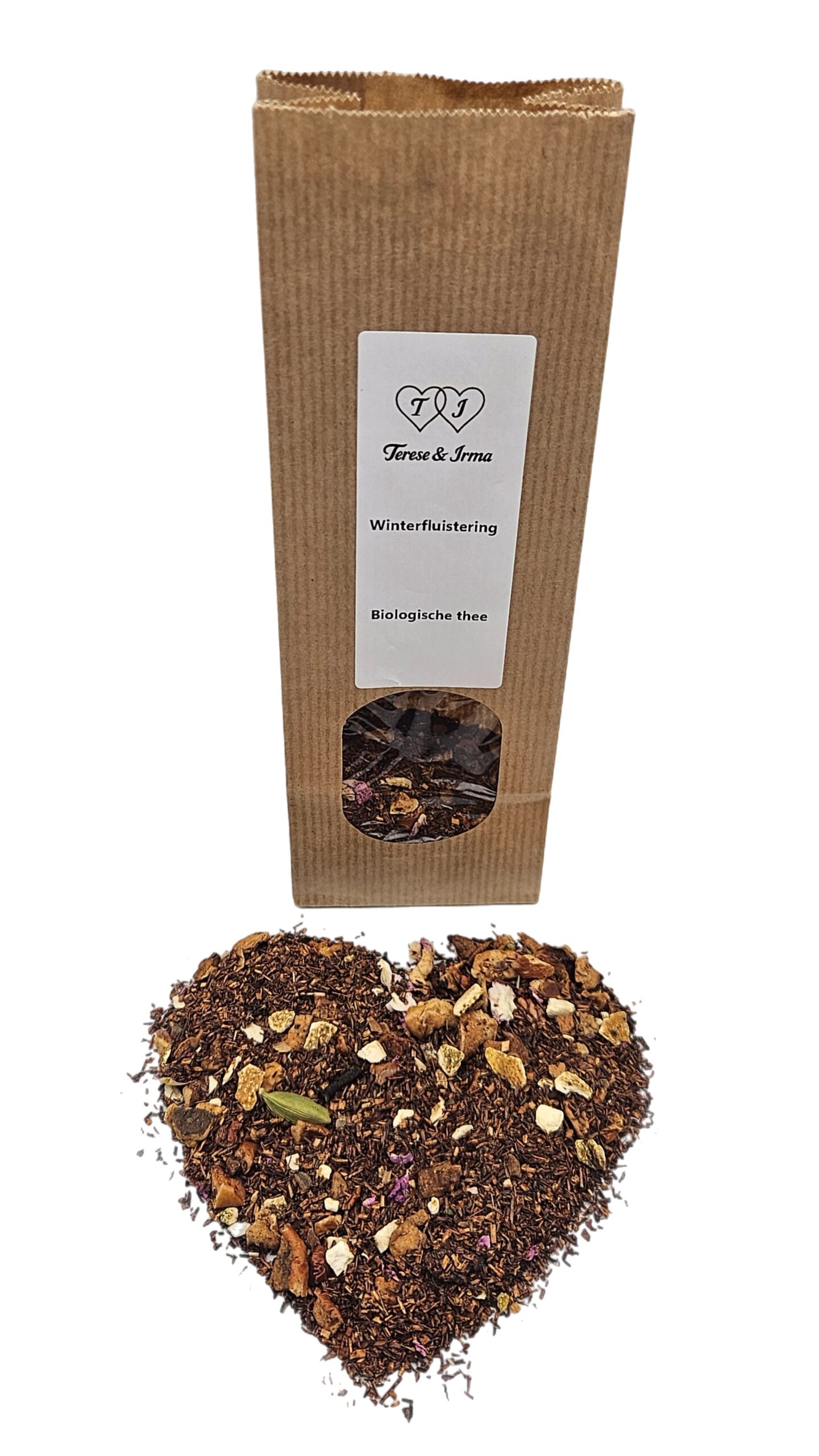 Winterfluistering is een biologische melange die de stille magie van winterse avonden in je kopje brengt. De zachte basis van natuurlijke rooibos vormt een warme en milde ondertoon, terwijl de fruitige frisheid van appel en sinaasappelschillen een sprankelende helderheid toevoegt. De kruidige warmte van kaneelstokjes, kruidnagel en kardemom geeft de blend een hartverwarmend karakter, subtiel afgerond met de zachte elegantie van rozenblaadjes en een vleugje natuurlijke aroma’s. Het resultaat is een harmonieus samenspel van kruidig, fruitig en bloemig. Een thee die je omhult met rust en gezelligheid. Een infusie die voelt als een fluistering van winterse charme: zacht, kruidig en betoverend.